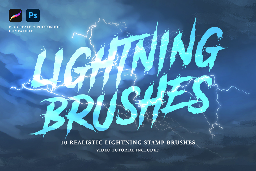Electrify your drawing with these Lightning Stamp Brushes for Procreate and Photoshop.
